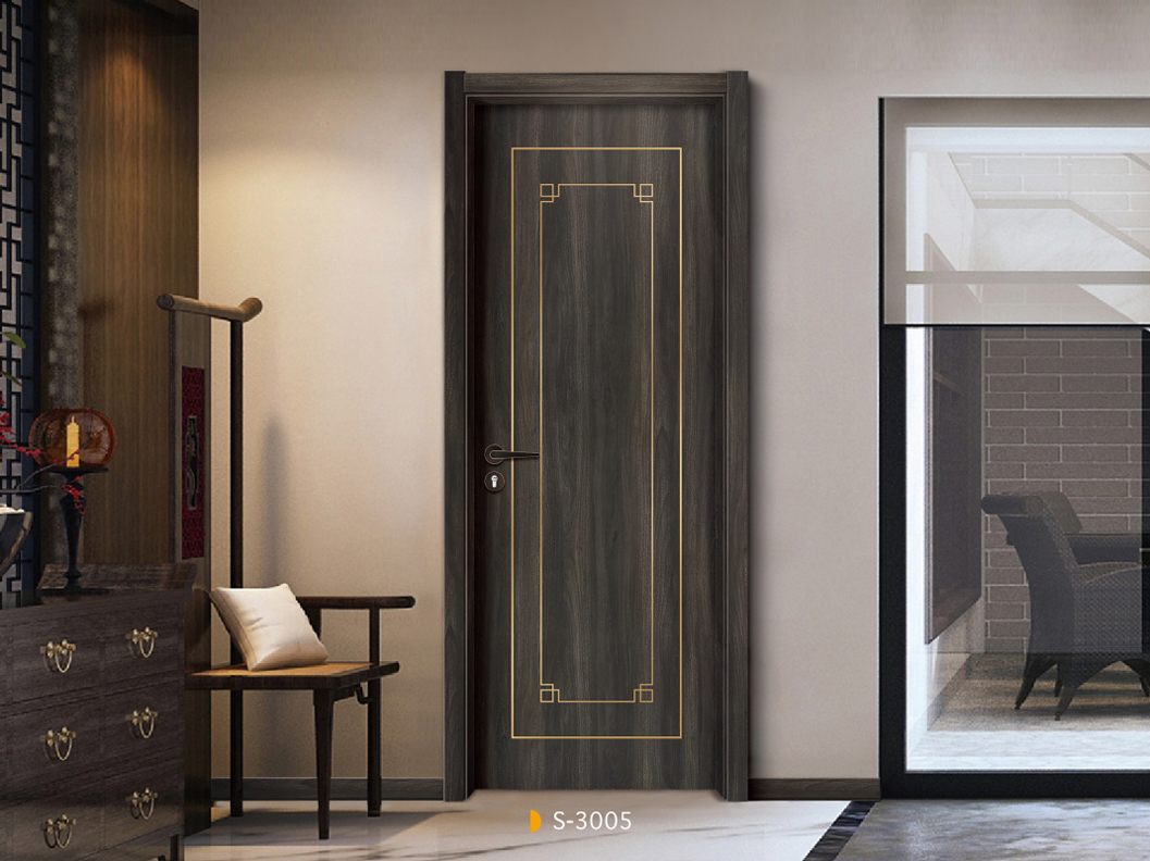 新款熱賣愉心S-3005鑲金屬條實(shí)木烤漆門